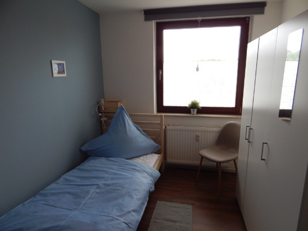 Die Ferienwohnung hat zwei Schlafzimmer, wovon ein Schlafzimmer ein Durchgangszimmer ist.